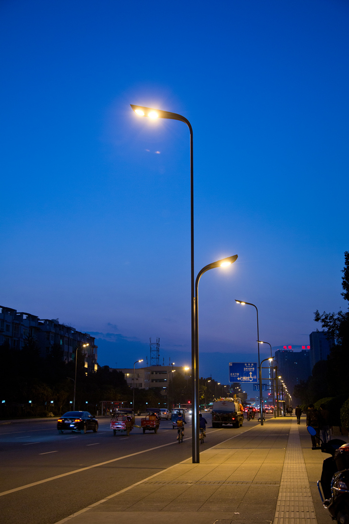 迎賓大道,是北京王府井新區(qū)的重要交通要道。2016年3月,耀星光電公司為王府井大道生產(chǎn)制作、安裝了147盞雙葉燈。雙葉燈,是以象征禮節(jié)的“茶葉”為設(shè)計(jì)元素,融入現(xiàn)代簡潔的線條,時(shí)尚有韻味,外觀美麗大方,環(huán)保節(jié)能。燈頭采用茶葉瓣的形式,實(shí)現(xiàn)了燈桿與燈頭的實(shí)體連接,在原有景觀照明基礎(chǔ)上,增加了功能照明,使功能照明和景觀照明完美結(jié)合。該款燈在王府井大道的運(yùn)用,寓意歡迎“自遠(yuǎn)方來的朋友”。